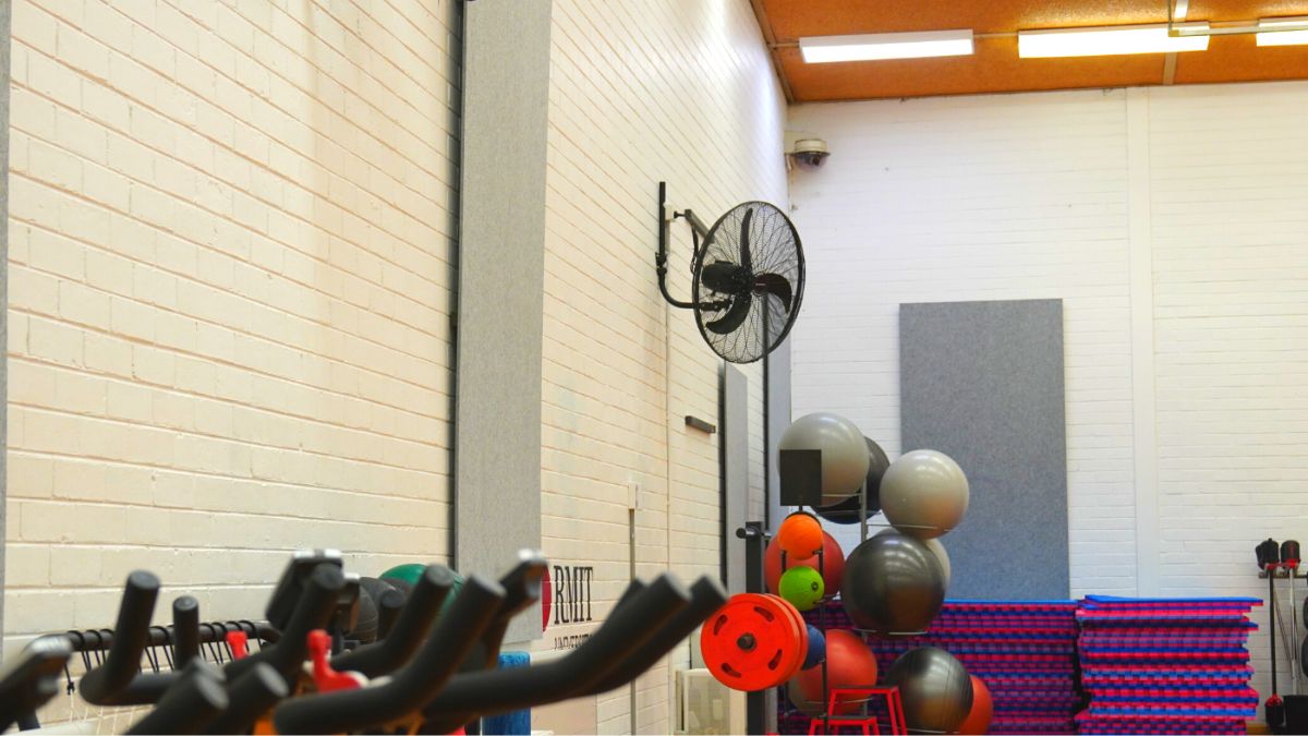RMIT has recently upgraded the group fitness studio with the installation of two new high-velocity Mercator wall fans. These fans are designed to provide efficient cooling during warmer months and intense fitness sessions. The industrial-strength fans quickly circulate air, ensuring a refreshing breeze throughout the room, giving our instructors an additional resource when needed most. With this enhancement, members, students, and staff can anticipate more comfortable workout experiences as the RMIT Sports Centre plans to expand its wellness and conditioning class offerings. Group fitness classes are a great way to meet new friends, get in shape as a collective and have fun in the process. Visit the links on the RMIT Sports Centre website to view the group fitness timetable, class conditions and descriptions of the classes.