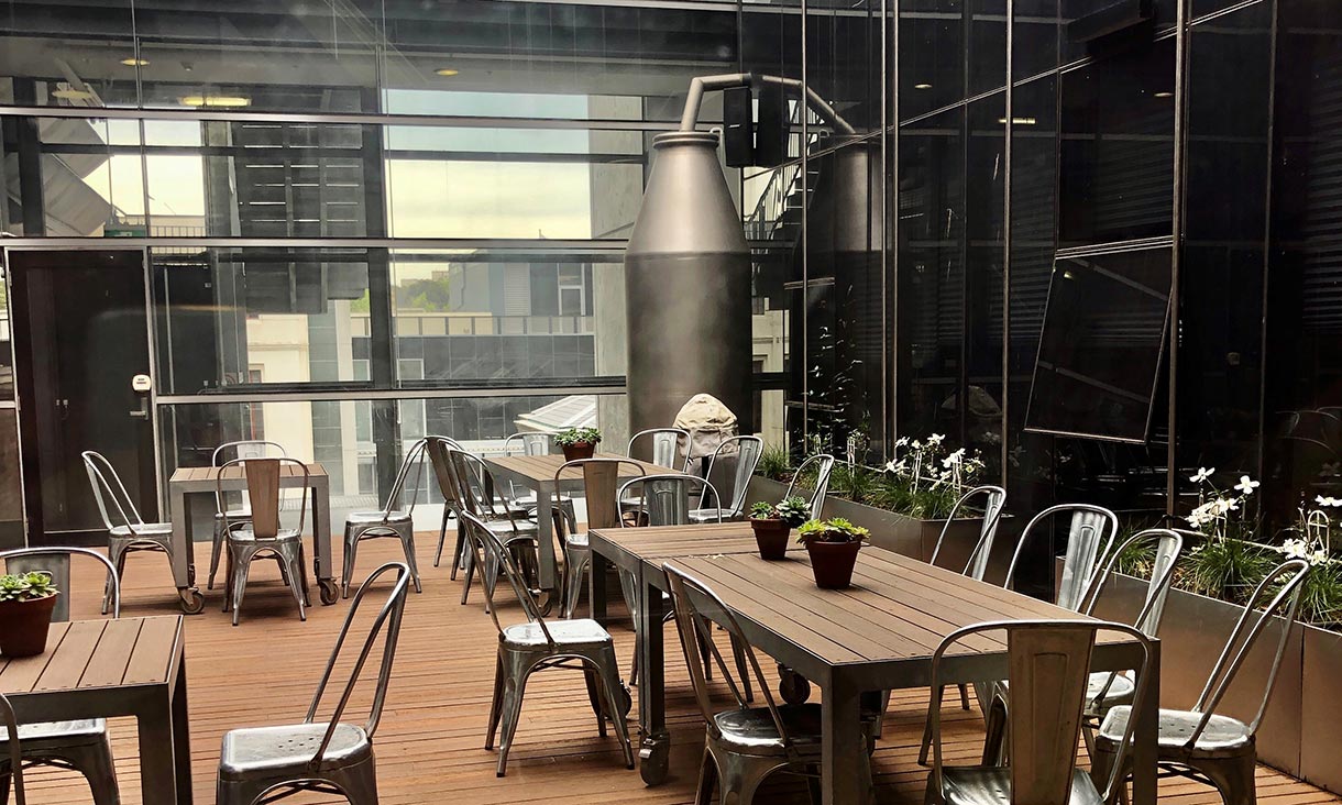There are over 100 drinking water fountains throughout the campuses with many highlighted with eye-catching yellow graphic signage on the stations which were designed by an RMIT student.