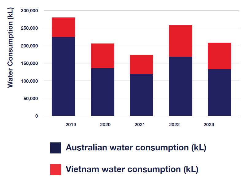 In 2024, water efficiency in our Australian operations was 2,909 litres per EFTSL, representing a 52 per cent reduction in water consumption intensity compared to a 2007 baseline.