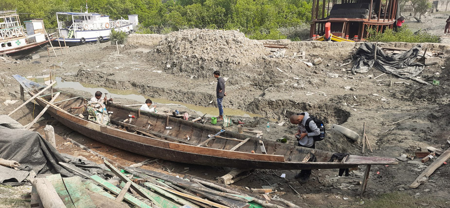 A wooden boat is being made to ferry passengers and material supplies between different islands in the Sundarbans