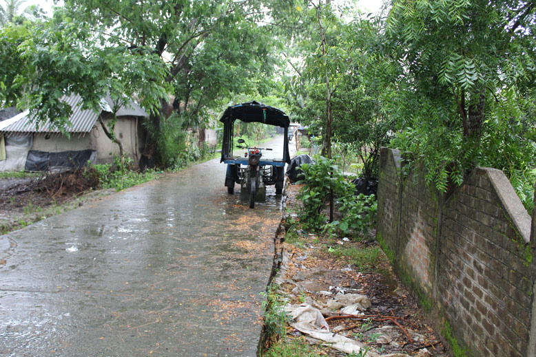 Engine Van on a village street in Satjelia Island, Sundarbans. Engine Vans are the usual modes of public transport on the delta island