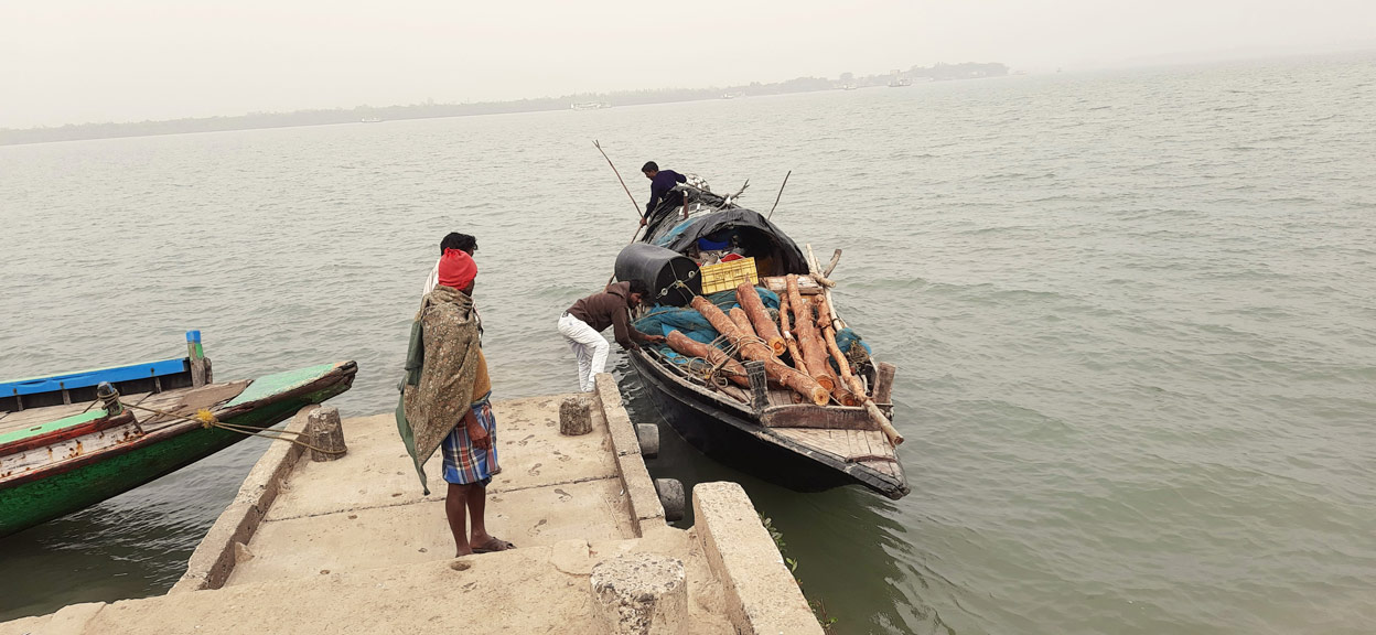 Logged wood being transported from the mangrove forests to the city.