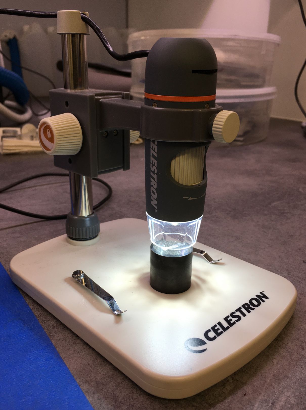The Celestron Handheld Digital Microscope Pro is an easy to use, low-power microscope with a 5 MP sensor camera system for capturing photos & video. Being portable, it can be used in the field, i.e. away from the lab.