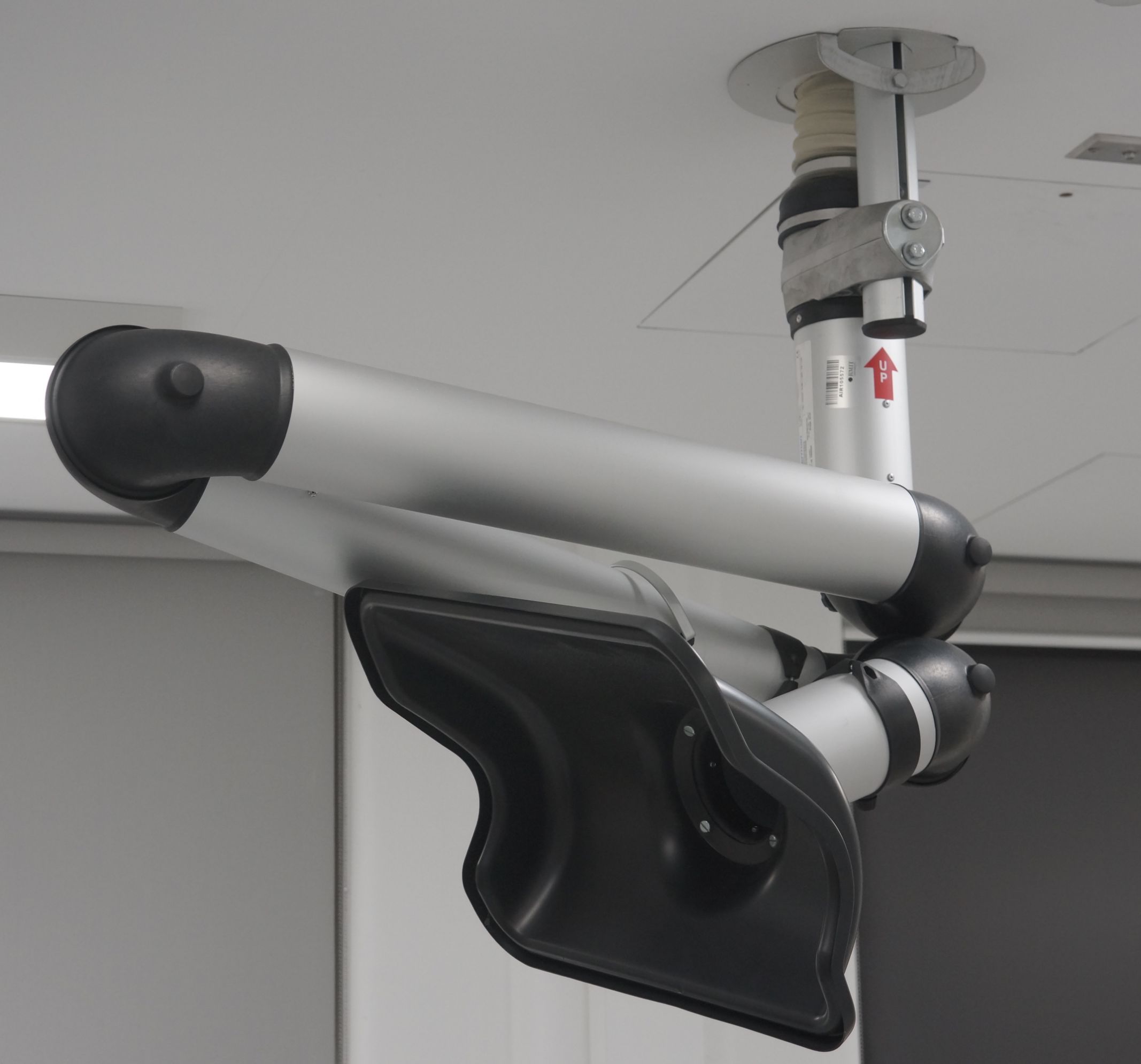 These are portable, ceiling-mounted fume extraction arms used to enhance the removal of odorous vapours generated during benchtop experimental work.
