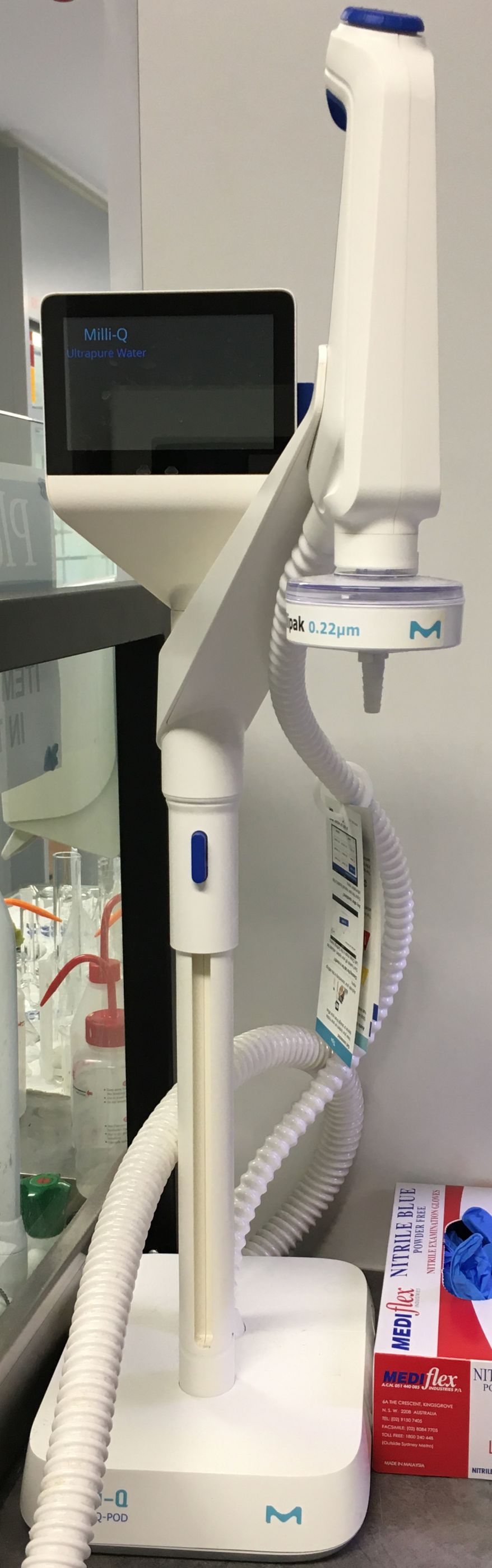 Used for producing high-quality, low-conductivity (>18 MΩ) deionised water for experiments.