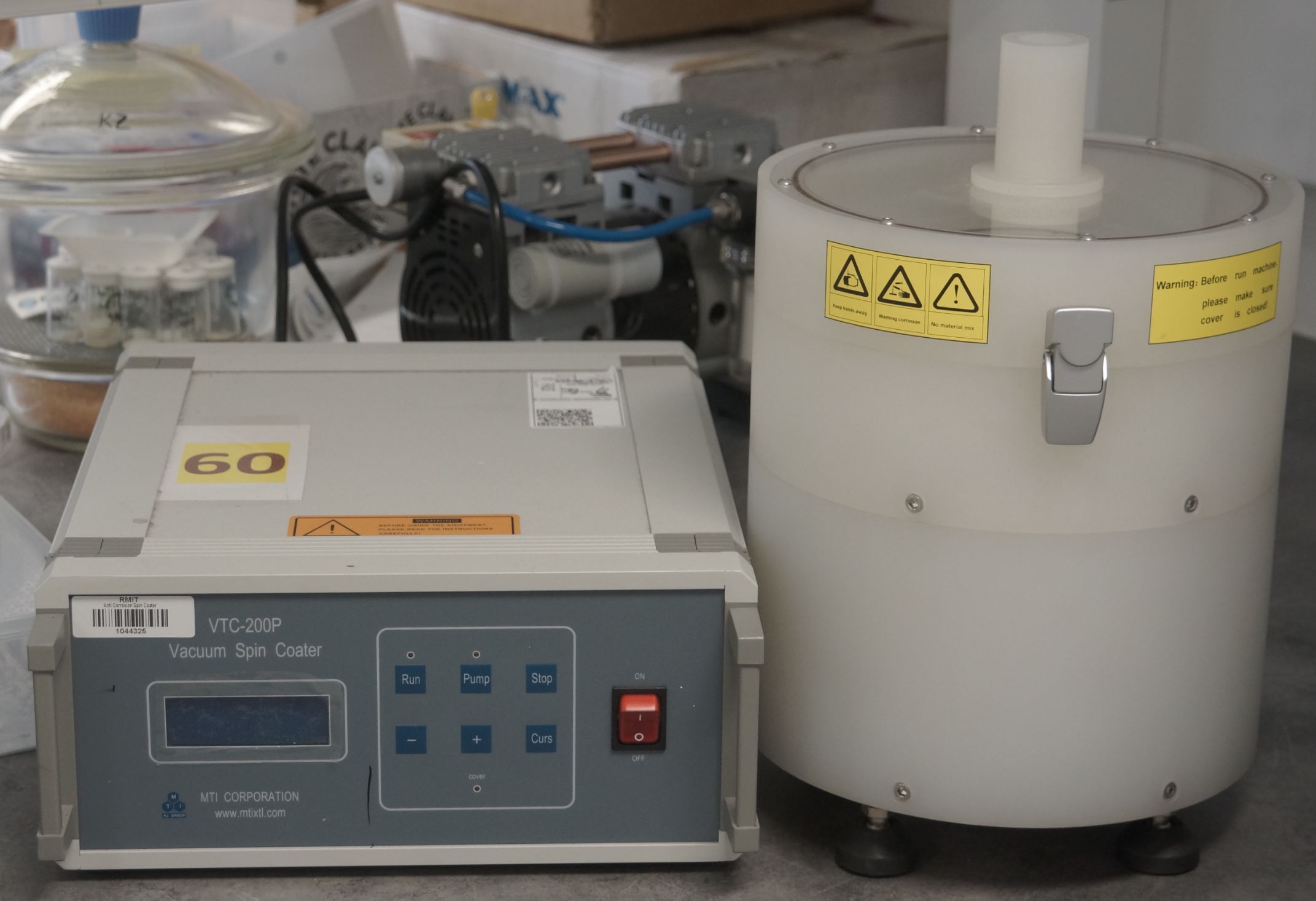 Used to rapidly mix powders with viscous liquids. Our typical use cases involve mixing corrosion inhibitor powders into polyurethane or epoxy prior to coating on metal samples.
