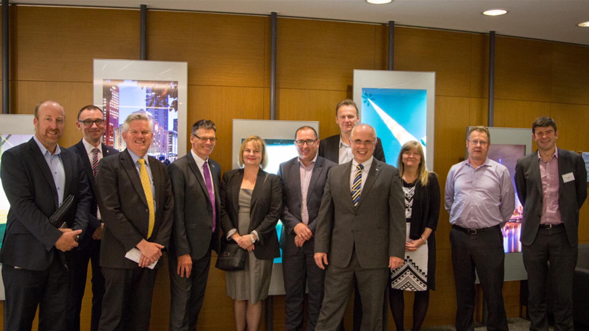 Pictured (l-r): Kevin Devlin (Level Crossing Removal Authority), Prof. Andrew Dainty (Loughborough University), Prof. Ron Wakefield (RMIT), Prof. Paul Gough (RMIT), Dist. Prof. Helen Lingard (RMIT), Corey Hannett (Major Transport Infrastructure Authority), Evan Tattersall (Melbourne Metro Rail Authority), Prof. Alistair Gibb (Loughborough University), Joanne Stephenson (Major Transport Infrastructure Program Board Member), Alan Garner (Level Crossing Removal Authority) and Peter Wilkinson (Melbourne Metro Rail Authority) attend a World-Leading Infrastructure Safety Research Workshop on 8 November 2016.