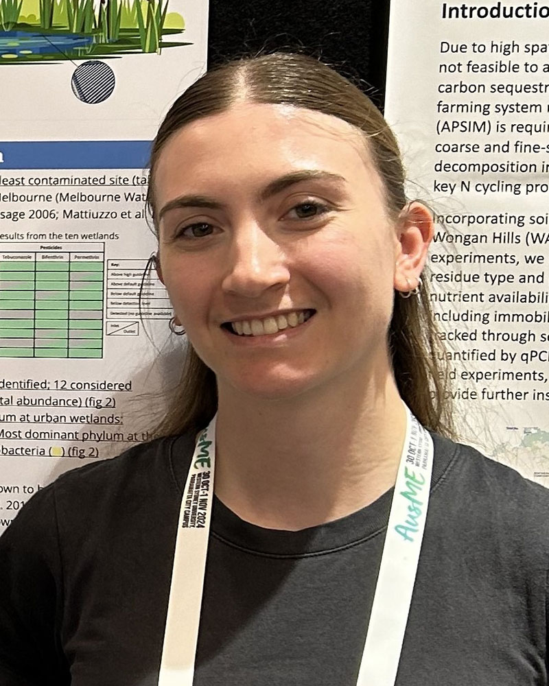 Having completed my PhD with the AQUEST group in 2024, looking at how Bifenthrin (a synthetic pyrethroid pesticide, used for termite control and prevalent in new housing estates) is affecting local urban water bodies and their fauna in particularly the endangered Growling Grass Frogs, Litoria raniformis. I am currently writing up papers pertaining to my research while working at AQUEST. My work has supported improvements to EPA Victoria guidance for termite control: Civil construction, building and demolition guide Publication 1834.1 Guidance Sheet 4: Termite pesticide.