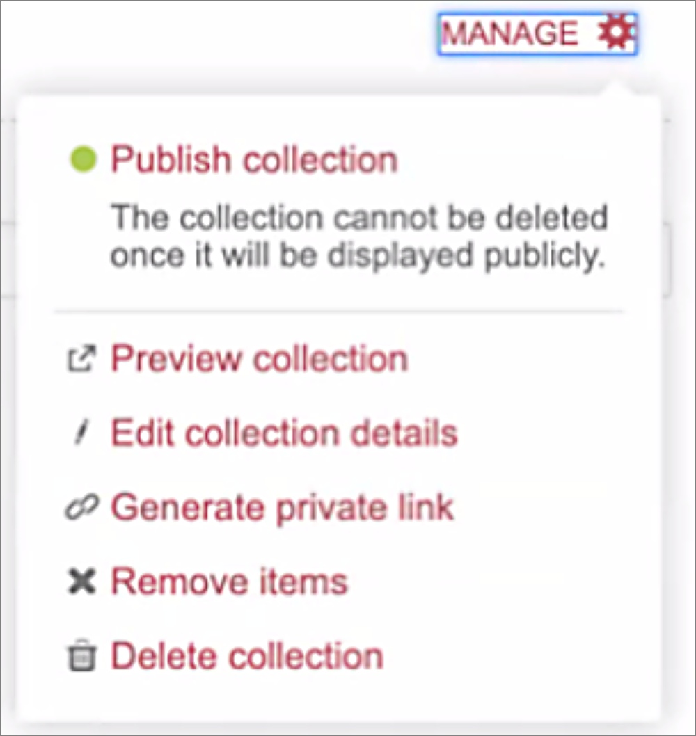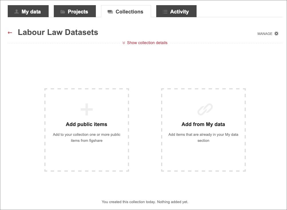 Option 1: Once you’ve created the collection, select Add public items or Add from My data.