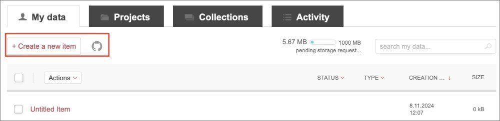 1. To upload your file, click the +Create a new item button.