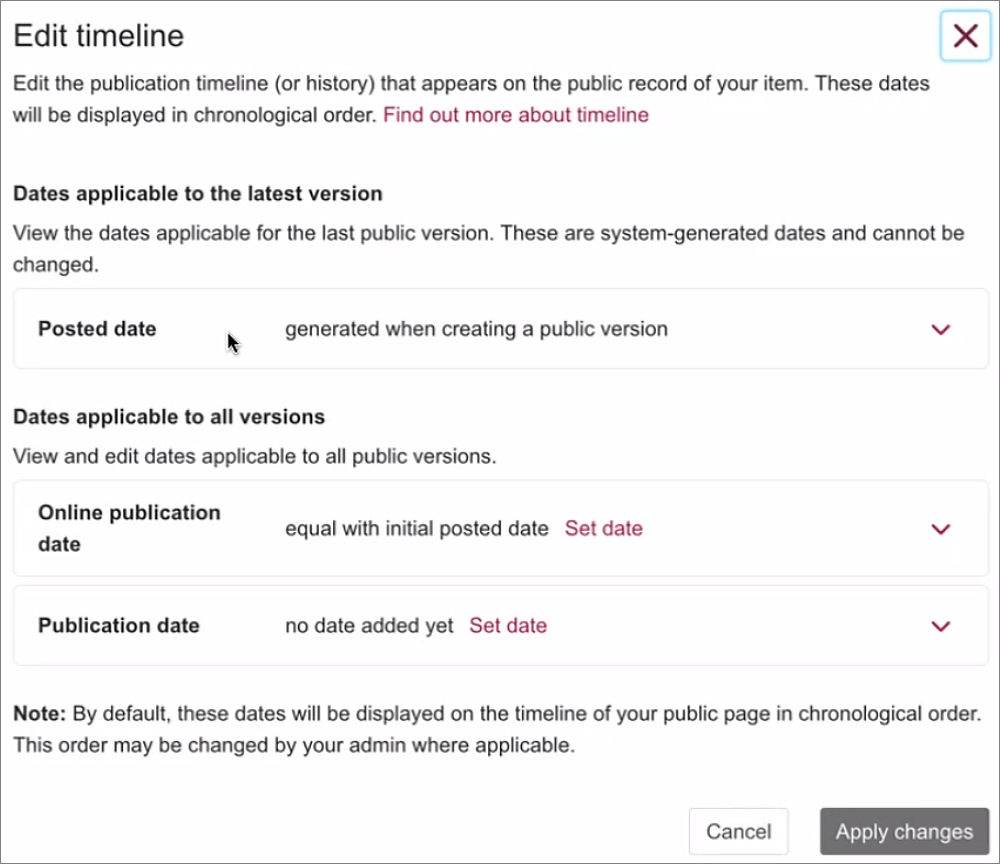 Refer to the Adding descriptive metadata instructions under the Manually adding your research output section for more information.