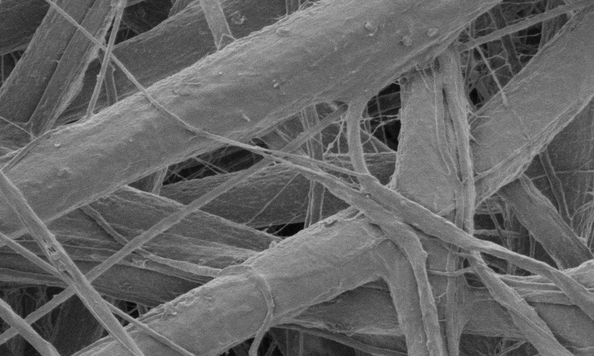 Header image: Nanofibres embedded with flourescent healing sensors (image magnified 15,000 times).