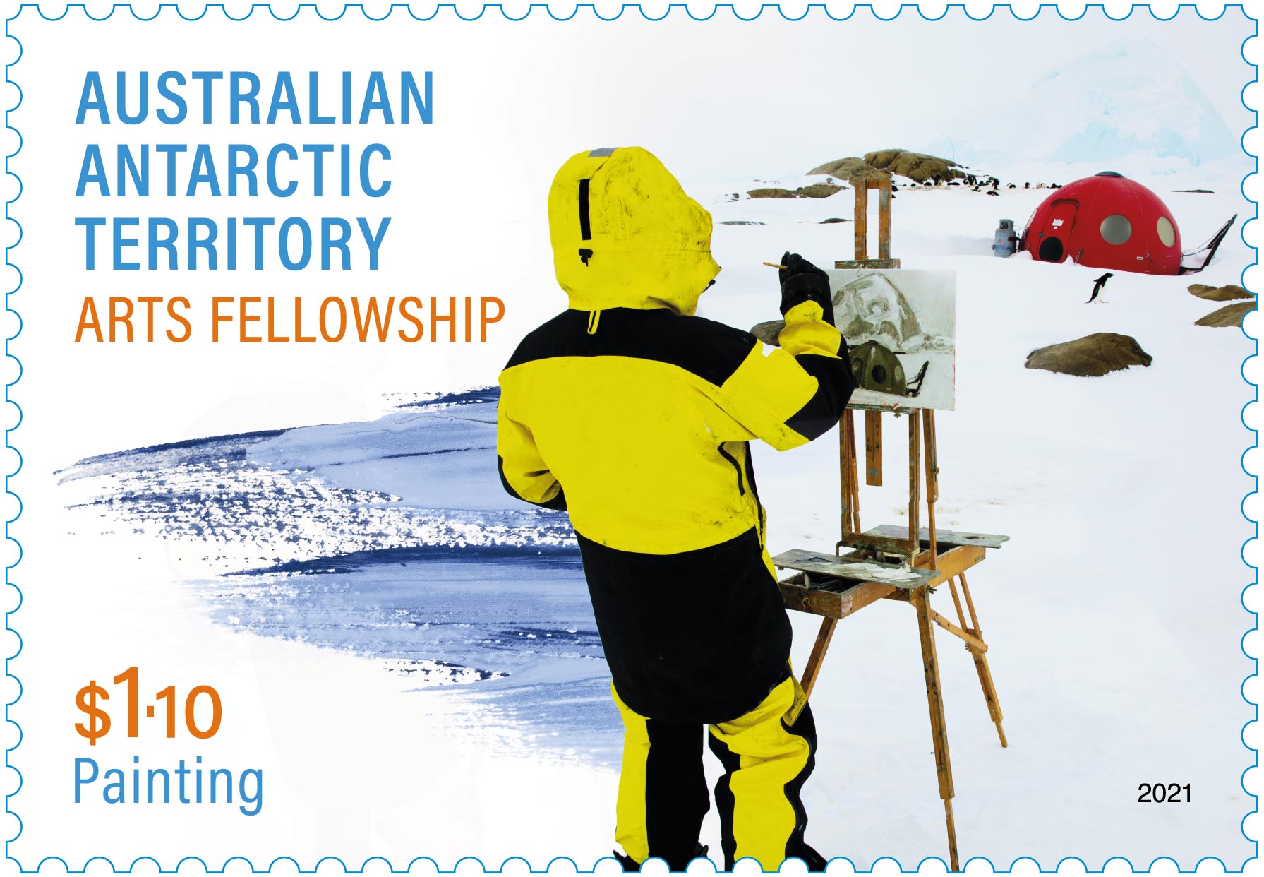 The Australian Antarctic Territory: Arts Fellowship Program stamp issue is available from 16 March 2021 at participating Post Offices and online.