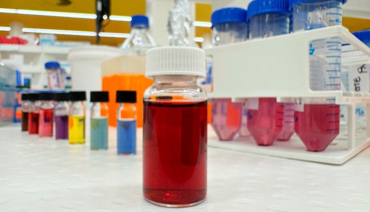 Sanskruti Lakhotia from RMIT's Sir Ian Potter NanoBioSensing Facility holds a bottle of the nanoparticle formula being used to develop Nexsen's kidney diagnostic tests. Sanskruti Lakhotia from RMIT's Sir Ian Potter NanoBioSensing Facility holds a bottle of the nanoparticle formula being used to develop Nexsen's kidney diagnostic tests.
