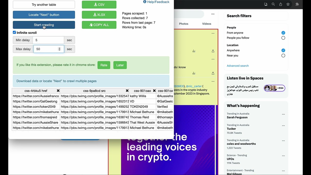 ProTip - When the search fails to load and the blue “retry” button comes up, press it. It will restart the page load, and you can re-activate your scrape.