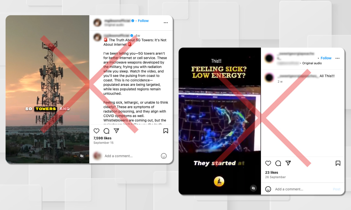 The video, published to Instagram in September 2024 by a self-described US businessman, claims that 5G towers are “not for internet at all. It’s a microwave weapon developed by the military to be used on the citizens.”