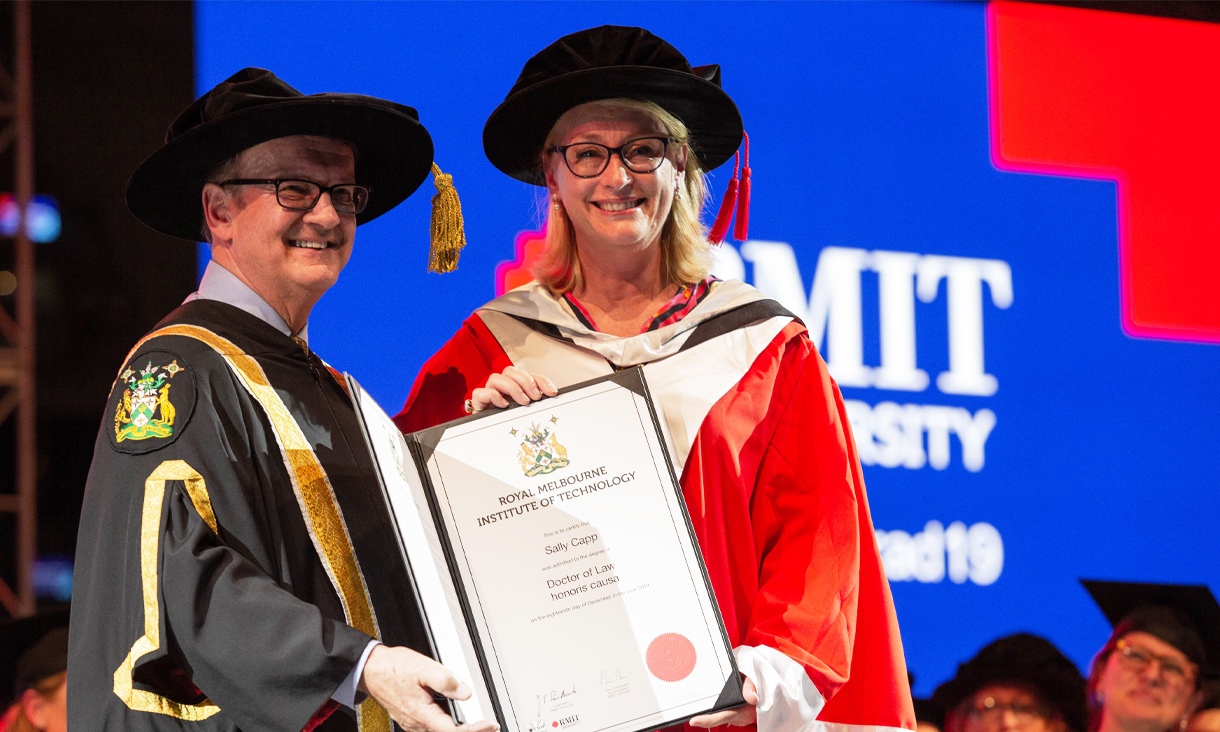 L-R: RMIT Chancellor Ziggy Switkowski AO and City of Melbourne Lord Mayor Sally Capp at the RMIT graduation ceremony