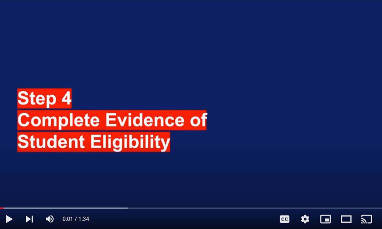 [On-screen text: Complete the Evidence of Student Eligibility Declaration]