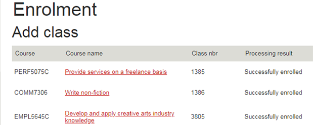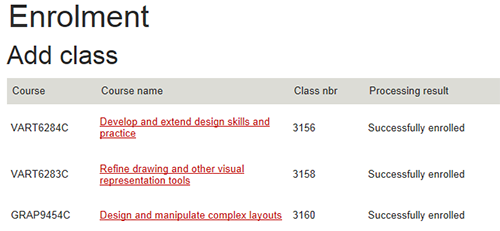Otto: Finally, you can lock in your classes! Your classes should be pre-ticked for you to make sure you enrol in the correct number of classes to complete your program. If they're not, follow the instructions in your program structure to contact your college for assistance via Student Connect. Add your selected classes to enrol, then you're done!