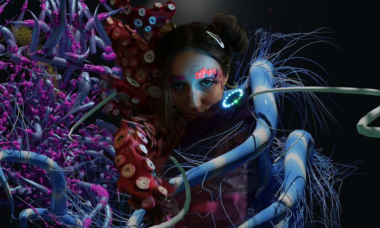 Georgina Marshall displaying an octopus inspired wearable garment Georgina Marshall's Grand Prix themed garment, Intergalactic Mechnica