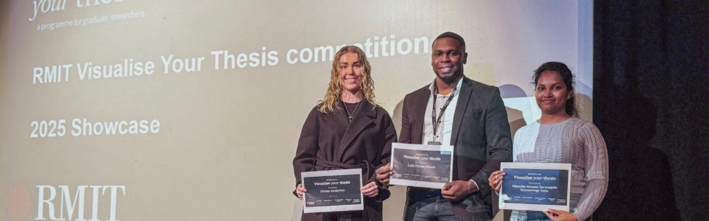 Yet 17 HDR students from RMIT were up to the challenge this year, submitting their theses to develop into the Visualise Your Thesis (VYT) format.