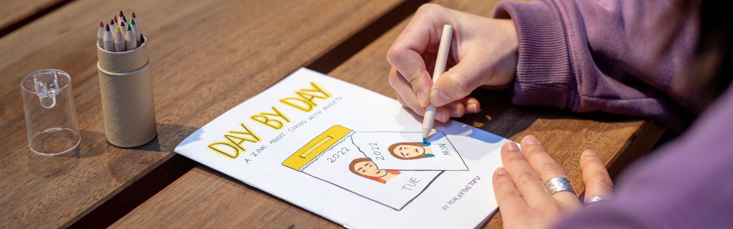 I would like to share my personal story as well as tips that can be useful to others. The zine offers visual reminders and invitations for readers to try mindful activities during their day and remember that it is totally ok to just take things one day at a time.
