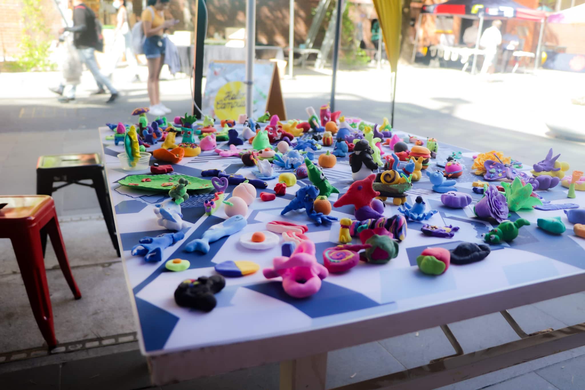 Clay Play invites students to sculpt colourful therapy clay into a form that resonates with them and then place their clay avatar on a map of RMIT City campus. A looping time lapse video of all the colourful clay avatars filling up the campus map will be projected on screens around campus.