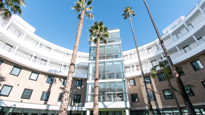 Low-rise apartment complex with studios and shared apartments. Media room, music room, gym, outdoor courtyard and rooftop terrace. With the Community Spirit Program and 24-hour support, residents are made to feel at home.