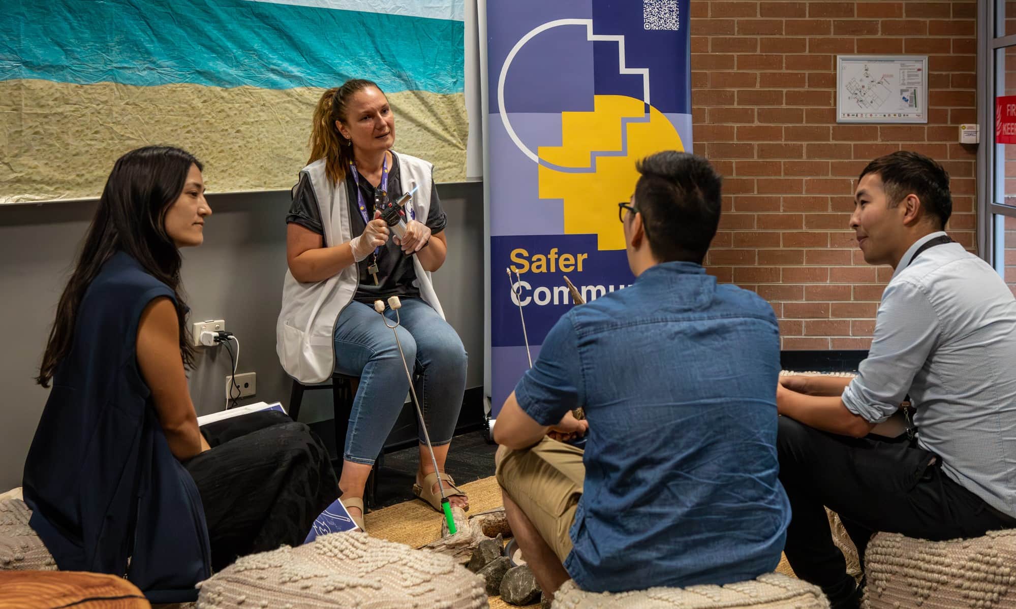 Visual: Various footage shows different people having conversations with the PSO's.